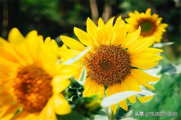 5.向日葵随着一天的太阳转一圈,一直向上,不低头,迷人的笑容。它的花语是爱慕,没有说出口的爱,高傲,忠诚。