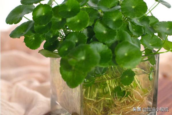 水培植物最主要的是水,铜钱草尤其喜欢,根系沾着水就能活,绝对不能缺水。对水的要求也不高,开始2一3天换一次,后来一周换一次,不发臭发烂就行,水里有黄叶很容易烂的,所以有黄叶要及时摘除。