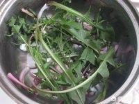 第四步:将蒲公英叶片放入炒锅中。