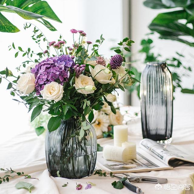 首先,是修剪,根据花瓶的高度,修剪鲜花的枝条,一般鲜花长度以高出花瓶口15厘米左右为宜,末端呈45°角剪断。浸没在花瓶里面的叶子和侧枝一定要修剪干净,因为叶子很容易腐烂在水里。修剪时,还要注意不要伤了花朵和植株。