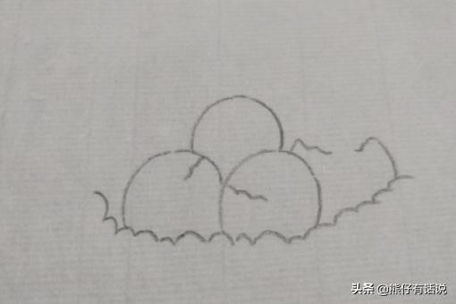 第六步:用波浪线在四周画出一个大的椭圆形,这是整个鸟窝的轮廓。
