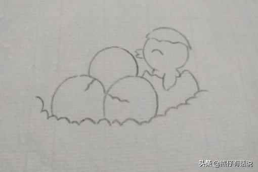 第四步:在右侧画出一个一半的鸟蛋。