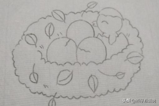 5、然后在鸟窝上画上草边作为装饰。