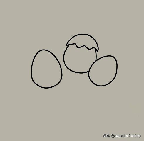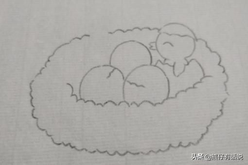 2、接着画上第三个即将孵化的鸟蛋。
