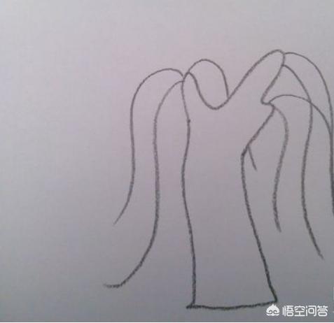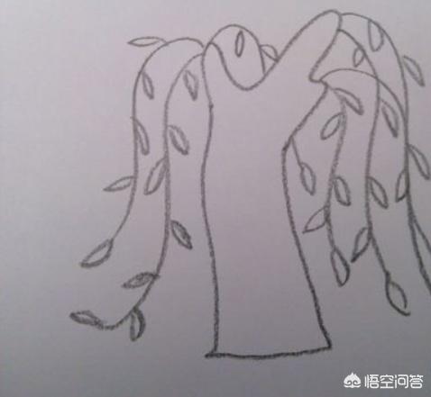 再树干上画上弯曲柔顺的柳枝条,柳条从顶端开始有弧度的垂下来,注意不要直接一条竖线滑画下来,这样没有树枝的灵气。