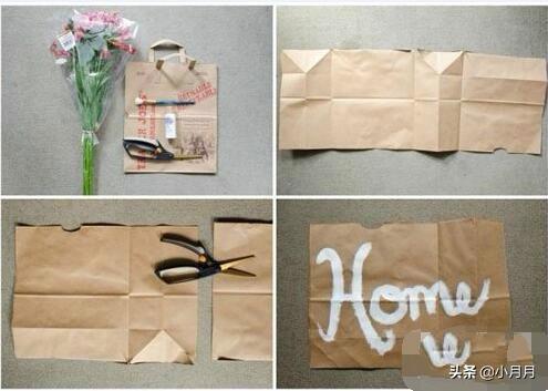 2、 .将牛皮纸干净的一面,写上喜欢的文字,比如“HOME”。